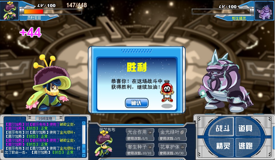 西野哥哥是依稀亚消强化,之后随便用个属性技。然后鲁斯王用湍流龙击打,被秒。在上布鲁,用海洋之心。之后上丽莎布布,使用金光绿叶,莫尔加斯被打败,获得精元。
