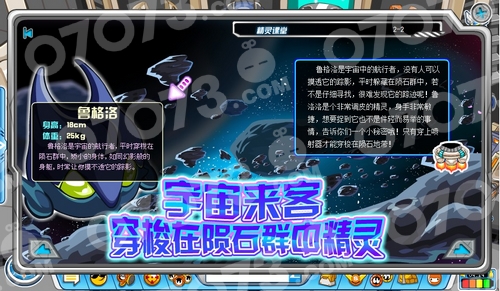 之后从纽斯那里可以传送到外太空。就可以看到鲁格洛了。鲁格洛会不停地移动,而小赛尔们会跑的很慢,因此要提前预判他跑动的位置,不要离老远就点击哦。
