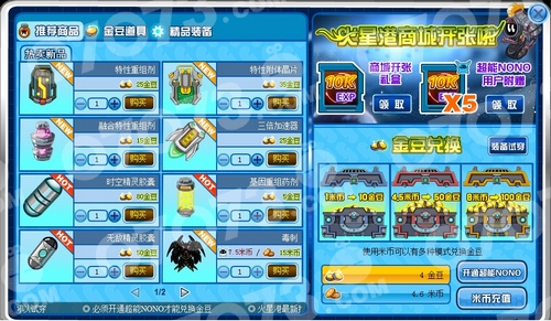 火星港商城开战啦。所有小赛尔都可以领取10000经验的大礼呢。有超能NONO的用户可以额外领取50000经验哦。