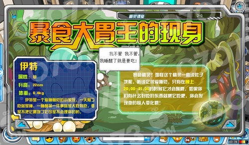 暴食大胃王伊特出现在比格星的觅食林(好奇怪的名字)。不过点击伊特,伊特就会很生气的说我要睡觉!