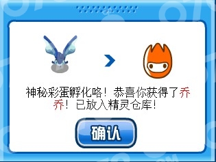 当带着神秘彩蛋打败50个野生精灵(不确定,大概是)。就会孵化出乔乔来。只有孵化出乔乔后,才可以领取新的神秘彩蛋。