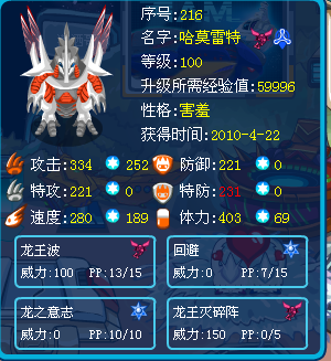 哈莫雷特主将(没有刷双防,没有加什么珠子,腰带(60金豆才加10多点防御,特防什么的太贵太贵黑呀)看图,速度可以不刷,个体低的加点防御,特防,血在385左右就可以了。攻击300以上,装个防御刻印。(这些普no可以吧)