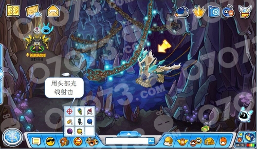 小兔子被吓到了!原来是时空掌控着!用头部光线攻击它!可惜没作用,只好点击时空掌控者进入战斗了= =