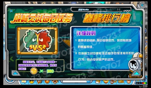巅峰之战增加每日任务,接取任务后,在巅峰之战中获胜1回合就可以获得额外的380点奖励哦。在比赛中逃跑或者是刷新都会受到惩罚,将扣除高额的巅峰等级。使用变速齿轮等也会受到处罚哦(看第二条)。
