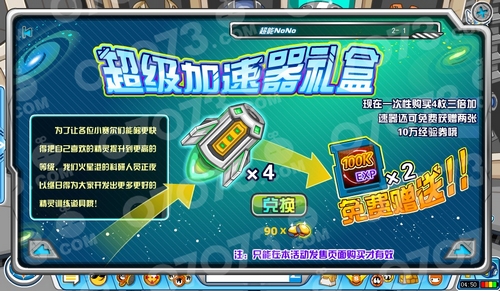 最新的超级加速器礼盒,4个三倍加速器要90金豆,附送20W经验点卷。