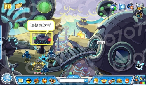 之后按照地上的脚印提示,把图中蘑菇头的灯调成如图左边绿、右边红的状态。之后就可以进入伪装堡垒了。