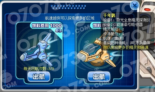 任务完成后,再次点击瞭望仓的装置可以启动飞船。分别是免费信鸽号和收费的千年鹤。免费的信鸽号的作用就是收集根本不可能直接使用,兑换道具的撒龙特矿石。而2米币一次的千年鹤才能看到稀有精灵。注意哦,是看到!