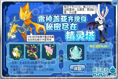 每天整点时间,都可以挑战雷伊!而每天的下午13点和晚上20点,可以在云霄星、露西欧星和火山星与盖亚战斗!小赛尔们别忘了领取强化能量药剂哦。