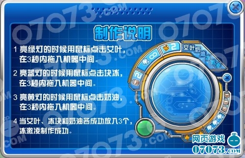 对话过后,会有制作巧克力的说明:绿灯亮起时放入艾叶草、蓝灯亮起时放入冰块、黄灯亮起时放入奶油。不过需要在3秒内完成。