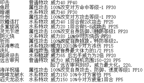 赛尔号鱼龙王技能表: