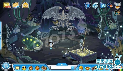 然后被传送到鱼龙王的密室,点击如图的三叉戟,记得要不停的点(或者是点住?)。