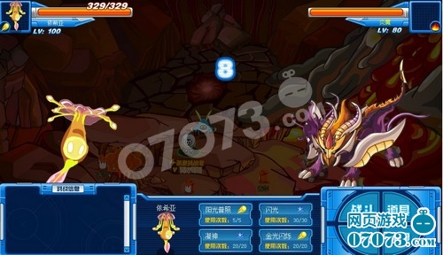 来到火山星山洞,直接进入一段动画。动画过后,可以点击右侧的炎魔战斗。