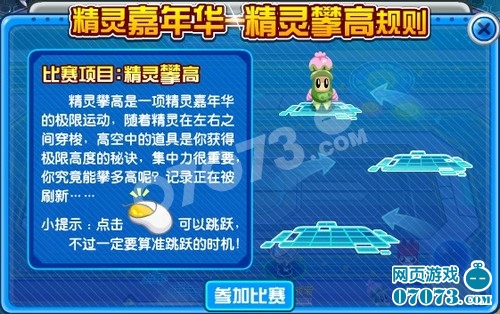 来到精灵嘉年华现场,可以看到下面正中间增加了新游戏精灵攀高,上方右侧增加了新游戏精灵抢位。