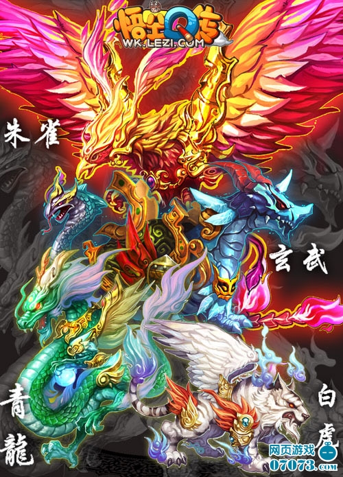 泛城科技第二代回合页游开山之作《悟空Q传》,中国上古传说中的四神兽青龙、白虎、朱雀、玄武降临三界,炫酷极限,拉风极限!据说它们五百年来一直都在等待那位有缘人……