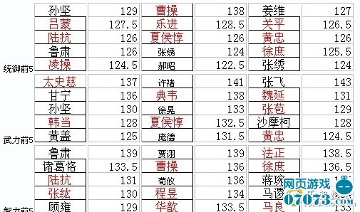 各国武将二线技能大比较