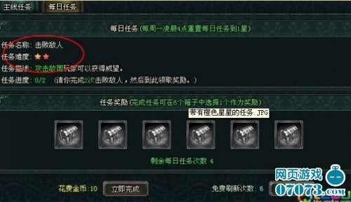 我给大家说的是这个每日任务能刷星,星的数目代表的就是完成后获取物品的等级(后期主要是为了获得高级的刻印)