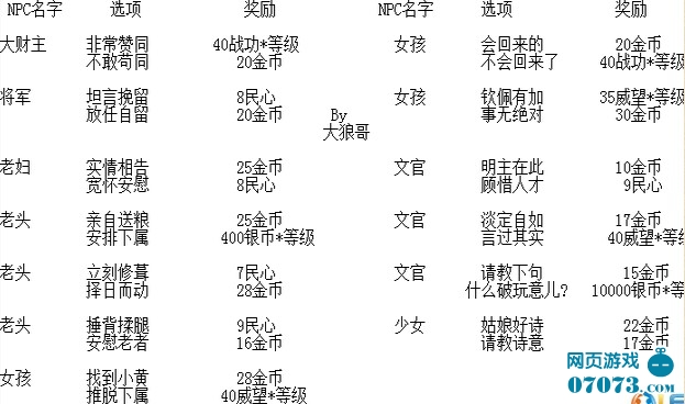 不难看出,女孩,老头,文官 都有3/5可以出现有金币的选项,所以看到这些NPC出现了,赶紧去洗洗手吧。