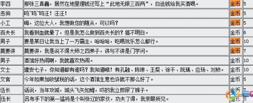 下面是我自己统计的一张会出金币的会谈NPC以及事件