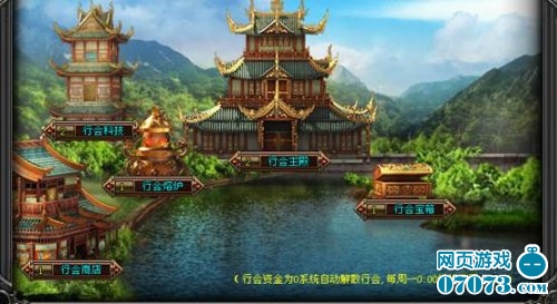 图上所示就是行会建筑的全图。这些建筑的等级都是需要靠行会资金来进行升级的。