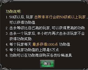 功勋是需要击杀其他行会的玩家才可以获得的,但建议大家要在行会宣战的时候才去击杀其他行会的玩家的,这样自己才不会红名的。如果不是宣战状态去击杀其他行会,红名了很大程度被别人暴了自己的物品的。所以这一点一定要注意的。