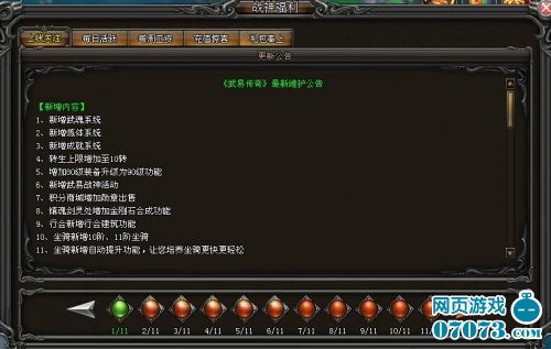 在武易战神福利里,相应大家上线的时候都会有,第一个功能就是上线关注,在这个上线关注里,阅读一些游戏的内容,有时候会获得一些好的物品的,比较金刚石之类的。所以大家每天第一次登陆游戏时,都点击下面的箭头,阅读这些内容,去碰碰运气的哦。
