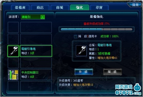 一、在奇跡大廳中,在“強化”介面升級裝備等級.