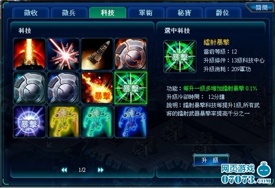 二、在科技中心中,在“科技”介面提升各類科技等級.