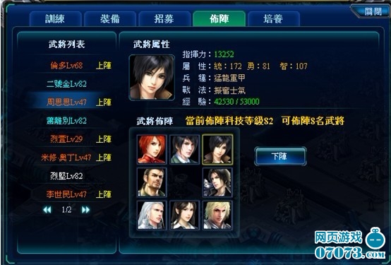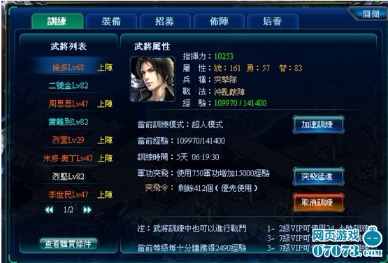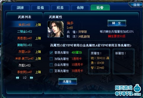 四、在武將訓練營中,在“培養”介面提升武將統、智、勇三種原始屬性
