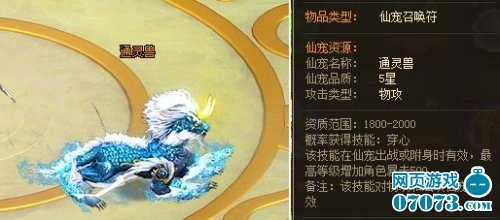 (极品宠物:通灵兽。携带技能:穿心,最高增加角色暴击500)