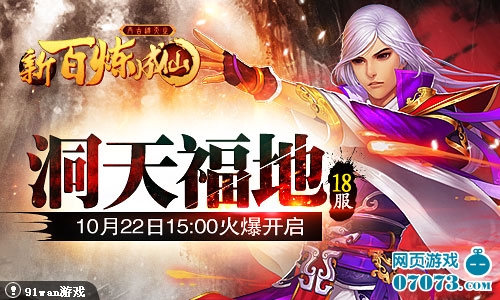 91wan《新百炼成仙》双线18服“洞天福地”将于2013年10月22日15点火爆开启,诚邀您与我们一块进入成仙之旅!