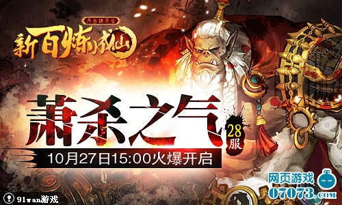 91wan《新百炼成仙》双线28服“萧杀之气”将于2013年10月27日15点火爆开启,诚邀您与我们一块进入成仙之旅!
