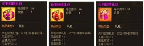 1.每进阶消耗15个「玉禽灵羽」,即可获得「灵羽回馈礼包」×1;