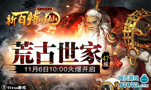 91wan《新百炼成仙》双线47服“荒古世家”将于2013年11月6日10点火爆开启,诚邀您与我们一块进入成仙之旅!