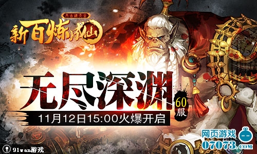 91wan《新百炼成仙》双线60服“无尽深渊”将于2013年11月12日15点火爆开启,诚邀您与我们一块进入成仙之旅!