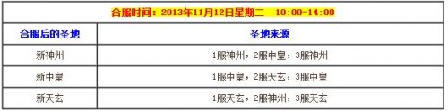 2013年11月12日14:00,服务器开启,届时玩家可使用原有账号通过原来的所在服登陆游戏。