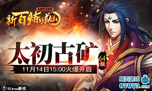 91wan《新百炼成仙》双线64服“太初古矿”将于2013年11月14日15点火爆开启,诚邀您与我们一块进入成仙之旅!