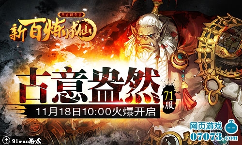 91wan《新百炼成仙》双线71服“古意盎然”将于2013年11月18日10点火爆开启,诚邀您与我们一块进入成仙之旅!
