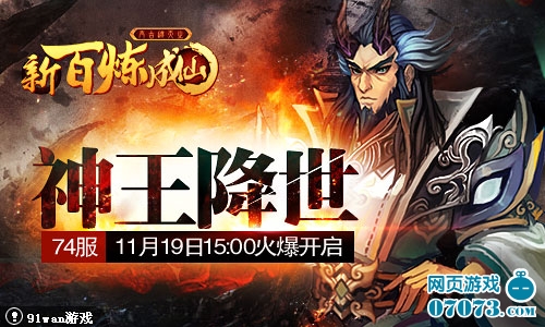 91wan《新百炼成仙》双线74服“神王降世”将于2013年11月19日15点火爆开启,诚邀您与我们一块进入成仙之旅!