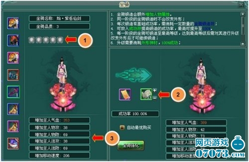 3、当每个阶段达到顶级后,要附加更炫的光效或者改变坐骑外形,必须用多个外形神材进行强化,100%成功。