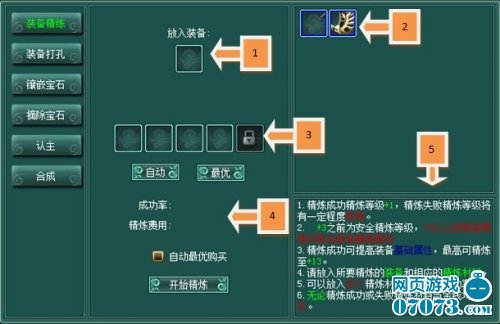 3) 在此处放入精炼道具(精炼石、精炼玉);