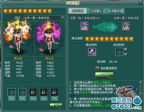 人有境界之分,同样法宝也是有境界之分滴!!同一境界的法宝分为极、道、始三个阶段,且每个阶段对应一个独特的外形,分别会用星星、月亮、太阳这些图标来标识~通过不断炼化法宝,就能轻松提升其属性,每炼化一次图标上还会多亮一颗星!让你的法宝也晾起来吧,情牵日月星!