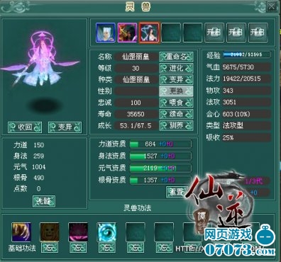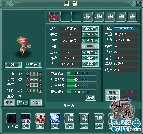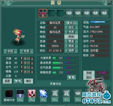 玩家对宝宝进行资质重生时,要注意我们不但追求其强大的攻击力,也要其给力点儿的根骨悟性~这样,宝宝在升级时自行悟出华丽技能的几率将会大大增加!玩家在做主线任务时会得到系统赠送的娇俏可爱的紫风花灵,系数法术攻击型灵兽~