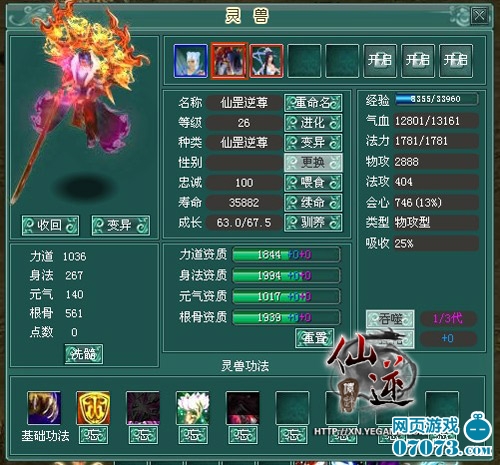 而灵兽技能的领悟不得不提到万法之源——悟性,灵兽的悟性越高,相应的其领悟技能的几率将大大提高~