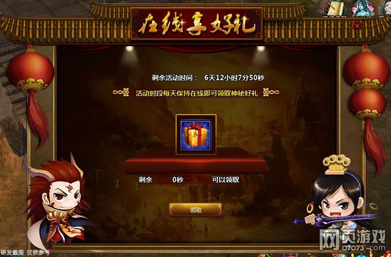 1)玩家在活动期间保持在线,根据在线时长即可领取在线礼包。