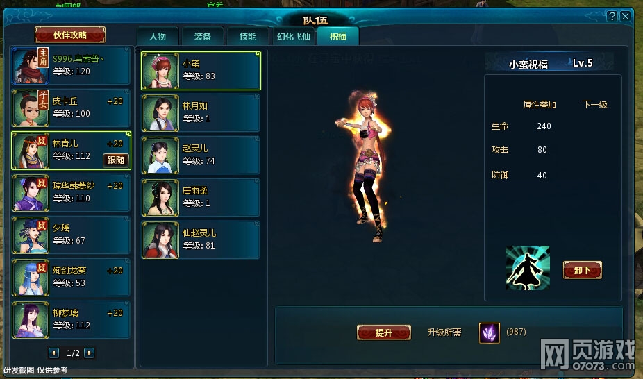 2)祝福技能的等级随着祝福伙伴的幻化飞仙等级的变化而变化。