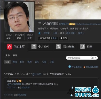 13分钟后,盗号者再次修改签名称:就是被你们这行业的人骗的,所以最恨你们这个行业的人。下午4点11分,盗号者放出了令人哭笑不得的言论称:你好好想清楚,你当年做了什么肮脏的事,还记得当时那无辜眼神的小女孩么。曾强在微博上直言“盗号就盗号,不带黑我的”。