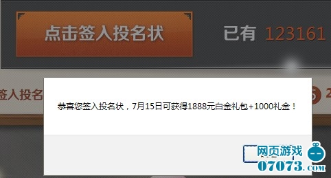 3、所有签入投名状的玩家都将获得1888白金礼包+1000礼券奖励,将在7月15日时通过系统邮件发送。