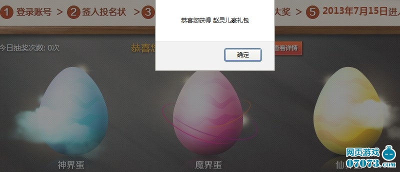 随之有一次砸蛋机会,小编砸中了赵灵儿礼包。