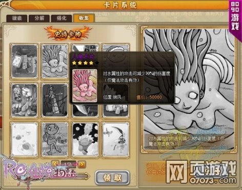 卡片系统是8090仙境物语中比较经典的系统之一,玩家可以选择不同的类型来增强自己的实力,当面对不同属性的怪物时,更有专属卡片前来助阵,比如想要克制水属性怪物时,人鱼卡片就是最佳选择。