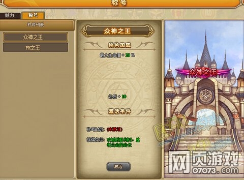 想想众神之王的称号多么的炫酷,以后再也不用怕一些宵小之辈了。这个称号的属性是最大生命值+10%和体质+10。玩家可以看到这个属性还是相当不错的。在如今要想单杀各种BOSS的话就必须要提高自己本身的血量。这也就能体现出这个称号的价值了。